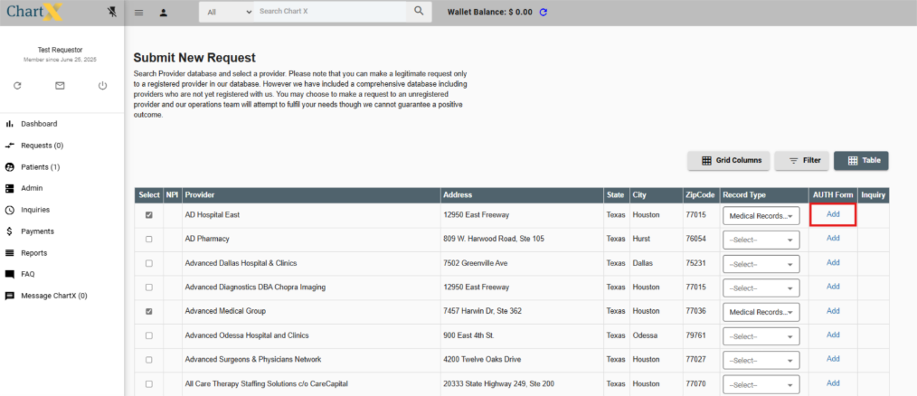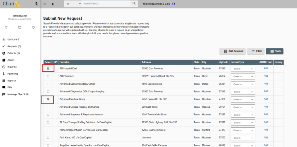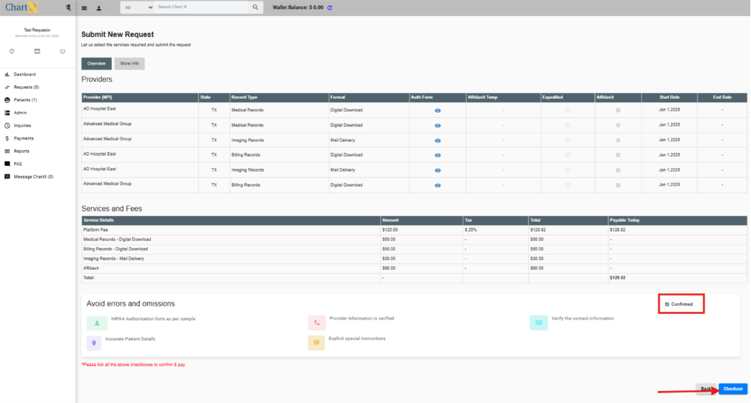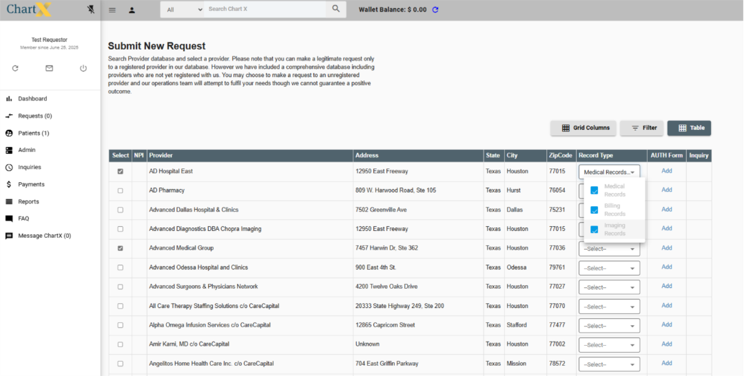 Pick one or more: Medical, Billing, and/or Imaging records.