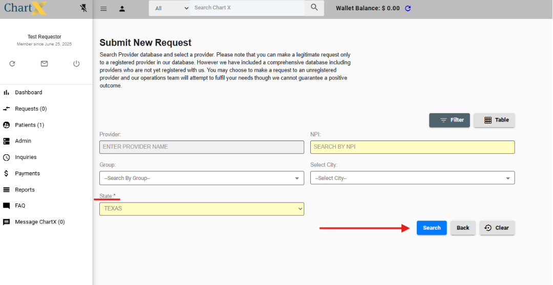 Enter the State (required). You can also enter City or keywords to narrow the search.